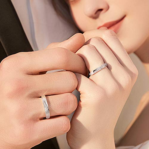 LOLIAS Coppia Anello Argento Sterling 925 Coppia di Anello per Donna Uomo Fedine Fidanzamento Coppia Anelli Fede Nuziale Anello Set Fedine Sposa Confezione Regalo Anello Regolabile