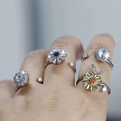 LOLIAS 3/4 PCS Fidget Spinner Rings per Le Donne Fiore Evil Eye Cat Cubic Zirconia Regolabile Girevole Calmante Preoccupazione Anello di Meditazione Ansia Stress Noia Anello per Alleviare