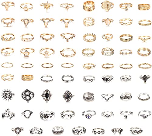 LOLIAS 71 Pezzi Set Anelli Punk Vintag Anelli Per Nocche Anelli Impilabili Anelli Per Dita Stile Boho Anello Per Pollice Gioielli Regalo Per Ragazze Donna