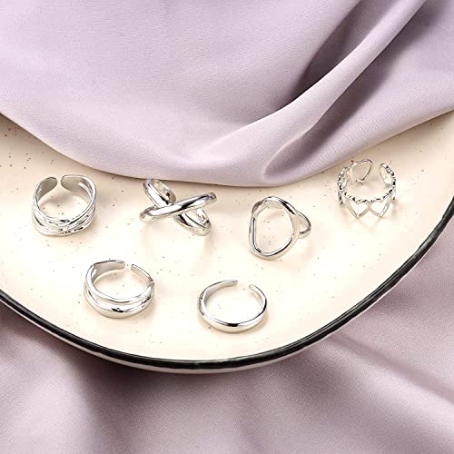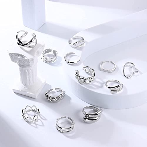 LOLIAS 12 Pezzi Regolabili Anello Grossi per Donna Uomo Oro Argento Anello Cupola Intrecciata Mezzaluna Impilabili Rotondo Anelli Aperto Spessa Grande Pollice Anelli Promessa Nozze