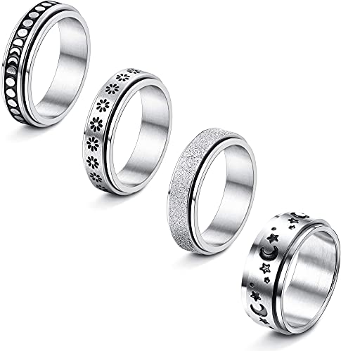 LOLIAS 4 Pezzi Spinner Rings per Donna Acciaio Inossidabile Fidget Band Rings Set Moon Star Sand Blast Finish Anello da Donna per alleviare Lo Stress Promessa di Matrimonio
