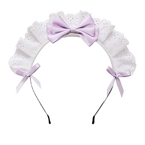 Accessori per capelli Sweet Lolita, fascia vintage per cameriera francese, patchwork in pizzo increspato, fiocco in nastro decorato.