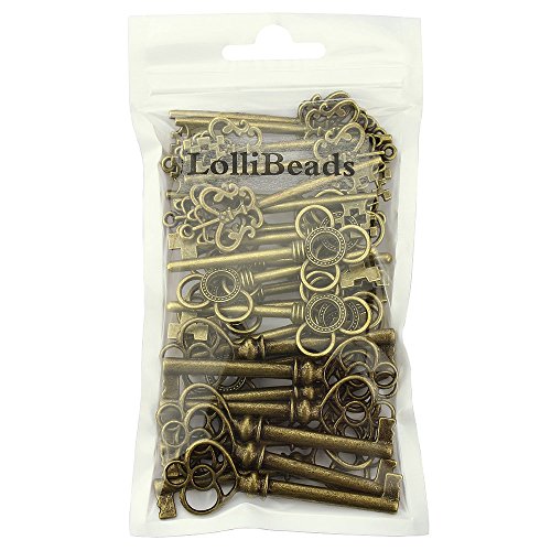 Lollibeads(TM), chiavi passepartout anticate, per collane e progetti steampunk, con cuore regale filigranato, Bronzo, Bronze-Large-30pcs, large