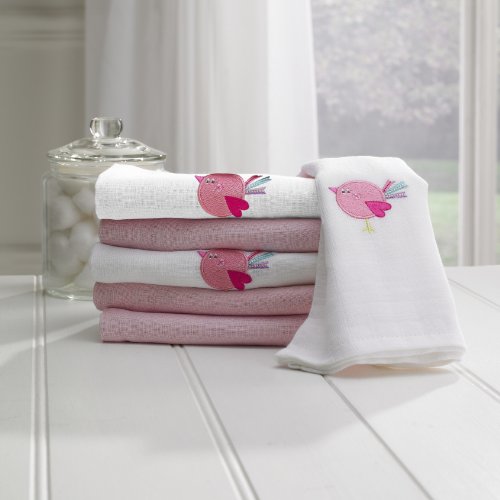 Lollipop Lane Teli in mussolina Pink Uccellino, 6 pezzi
