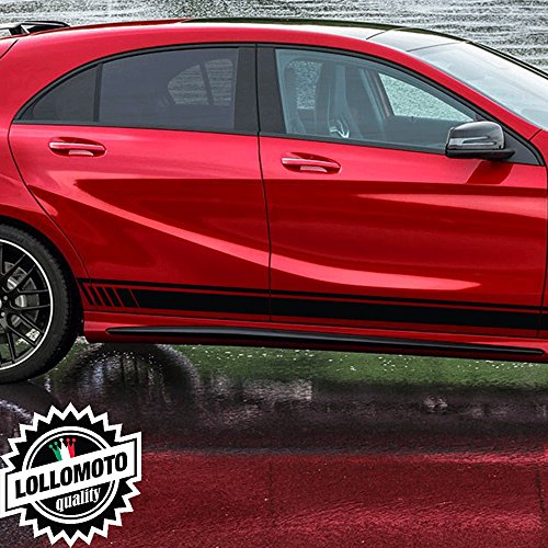 Lollomoto Strisce MCA per Classe A 2016 Sport Racing Adesivi Mercedes Benz Amg Stickers Fiancate Auto Strip Decal - Nero Opaco
