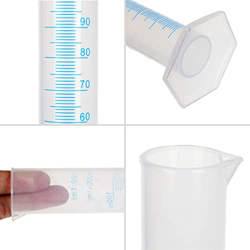 LOLYSIC 10 Pezzi Cilindro Graduato da 100 ml, cilindri graduati trasparenti, pistone di prova da laboratorio durevole, cilindro di misurazione, tazza per progetti scientifici