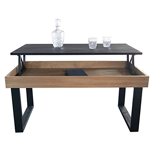 LoMasCasa - Tavolino da salotto modello Ebro elevabile, in legno di pino massiccio, con gambe in legno, colore: nero e legno, stile nordico, dimensioni: 100 x 50 x 48 cm