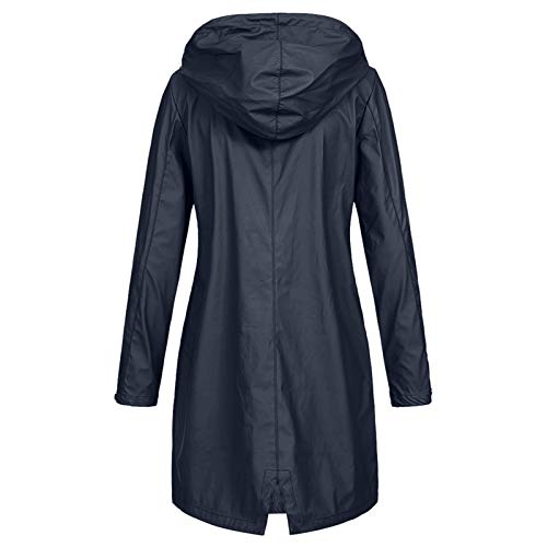 Lomelomme Impermeabile da donna lungo, impermeabile, con cappuccio, a maniche lunghe, antivento, con zip, giacca invernale, C2-marine, 4XL