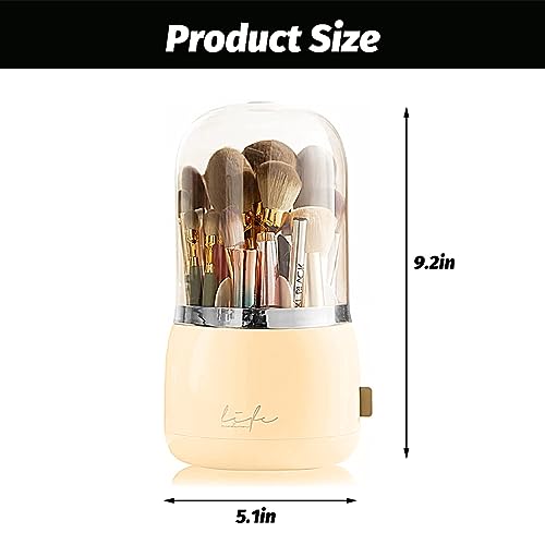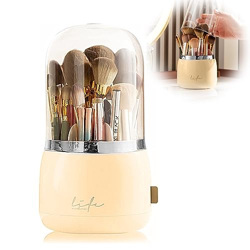 LOMUG Makeup Brush Holder, Rotante 360° Porta Pennelli Trucco con Coperchio Antipolvere Cosmetic Organizer Portapennelli da Trucco Chiuso Organizzatore per Bagno, Scrivania, Piano Di Lavoro