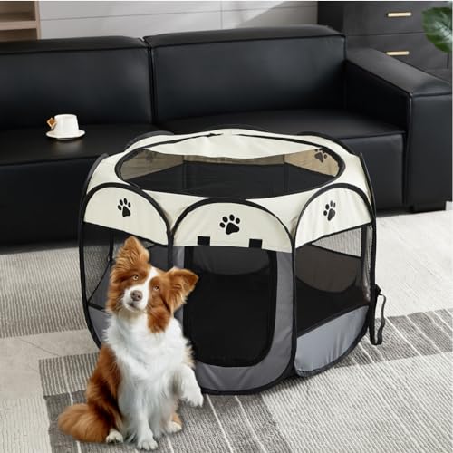 LOMUG Pieghevole Box per Cani Impermeabile Grande Recinto per Animali, Portatile 8 Pannelli Kennel per Cagnolini, Cani, Gatti, Porcellini d'India, Conigli,Tartarughe, per Interno o Esterno, 74x74x43cm