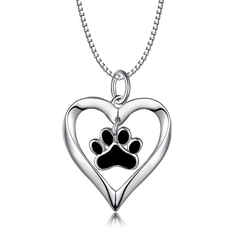 LONAGO - Collana in argento Sterling 925 a forma di cuore con cucciolo di cane, gatto, animale domestico, con ciondolo a forma di zampa, regalo per donne e ragazze e Argento, cod. PYX0550