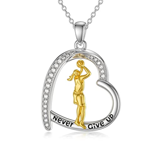DESIGN: Collana di una ragazza che gioca a basket con incisa "Never Give Up". Questa collana ispiratrice sarà un regalo perfetto per i giocatori di basket, gli appassionati di basket e gli amanti dello sport.