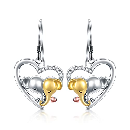 LONAGO Orecchini Elefante 925 Sterline D'argento Elefante Carino Orecchini Pendenti Gioielli per le Donne