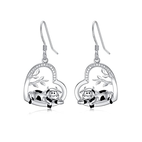 LONAGO Orecchini di Mucca 925 Sterline D'argento Carino Mucca con L'albero Della Vita Orecchini Pendenti Gioielli per le Donne