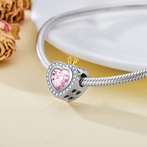 LONAGO Foto Personalizzata Charm per le Donne 925 Sterline D'argento Simulato Pietra di Nascita Bead Charm (Ottobre)
