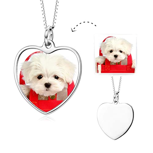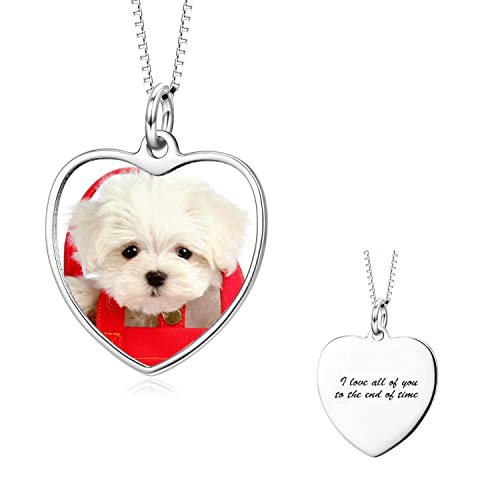 LONAGO 925 Sterline Argento Collana con Foto del Cuore Pieno di Colori Foto Personalizzata con Testo Inciso Pendente Collana per le Donne