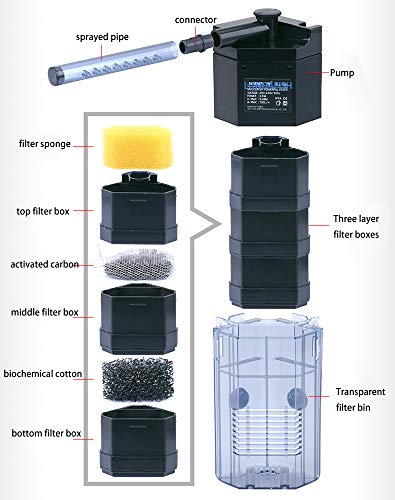 LONDAFISH Filtro a 3 stadi per Acquario Integrato Silenzioso e Multifunzione con Pompa dell'Acqua