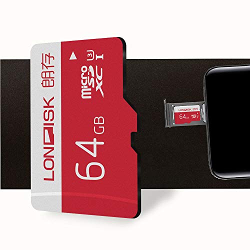 LONDISK 4K da 64GB Micro SD Card U3 Class10 Micro SDXC Schede di memoria con adattatore per giochi/cellulari/fotocamere (U3 64GB)
