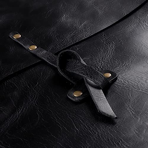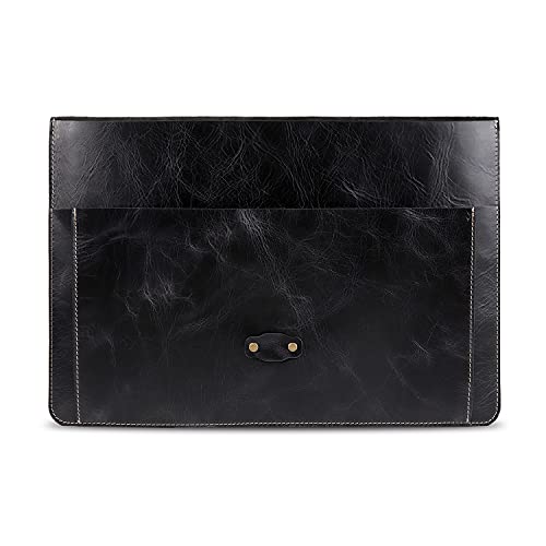 Londo - Custodia per MacBook Pro in vera pelle a grana con tasca frontale e chiusura con patta (Nero, 13 Pollici)