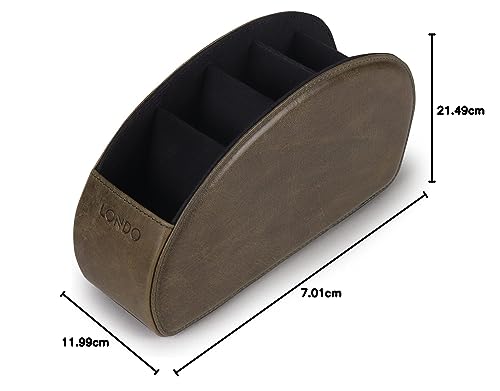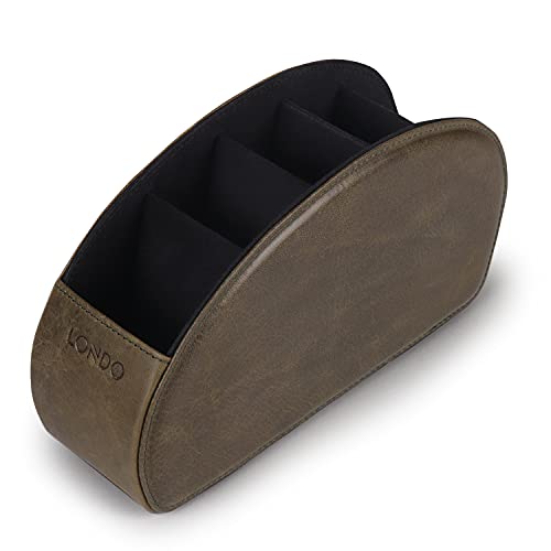 Londo Porta Telecomandi con 5 scomparti - Per contenere telecomandi di TV, stereo, decoder, DVD, Blu-Ray - in Vera Pelle con fodera interna in suede. Adatto per salotto o camera da letto