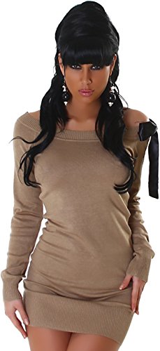 Jela London - Abito da donna a maglia, con spalle e fiocco (36/38/40)