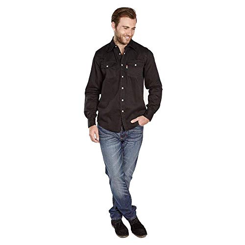 Duke London, camicia denim da uomo, a maniche lunghe, effetto sbiadito Black XXXX-Large/142 cm- 147 cm