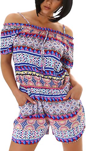 Jela London Tuta da donna leggera con bretelle, scollo a fascia, lunga, corta Blu 42-44