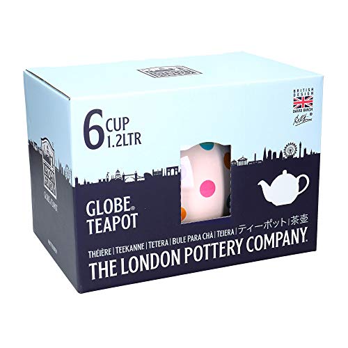 London Pottery Globe - Teiera a pois con colino, in ceramica, colore: bianco/multipunto, 6 tazze (1,2 litri)