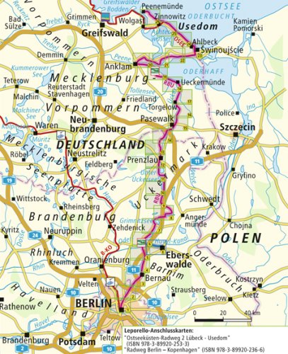 Long-distance cycle route Berlin - Usedom 1:50,000, Leporello cycle tour map