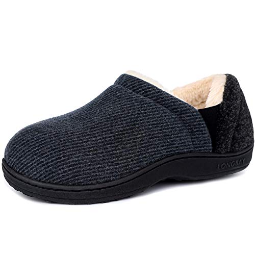 LongBay Pantofole da uomo in memory foam foderate in pelliccia sintetica con elastico regolabile