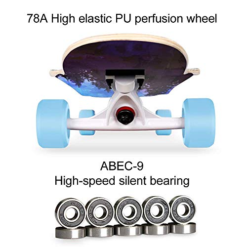 Prestazioni:cuscinetto silenzioso ABEC ad alte prestazioni,46 pollici di lunghezza x 9 pollici di larghezza,skateboard professionale completo,peso massimo fino a 150 kg/330 libbre.