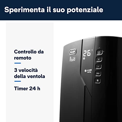 De'Longhi PAC EX120 Silent Pinguino, Climatizzatore Portatile REAL FEEL, 11.500 Btu/h, Timer 24H, Display LED, Classe A, 3 Velocità di Ventilazione, Termostato, Dotato di Maniglia, Ruote e Telecomando