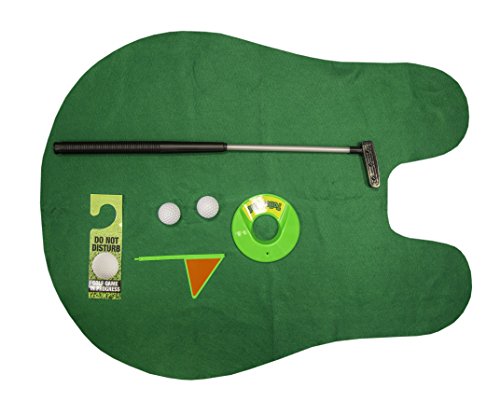 Con 2 palline da golf, putter e buca con bandierina, oltre a un cartellino con scritta in lingua inglese "Do not disturb" da appendere alla porta.
