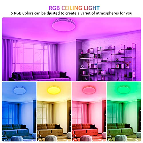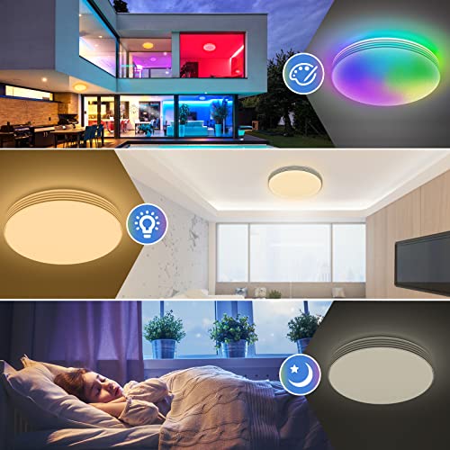 Longroad Plafoniera LED RGB, 36W Lampada da Soffitto Dimmerabile con Telecomando, IP54 Impermeabile, Funzione di Memoria, Lampadari Moderni Per Cucina Soggiorno Camera Bagno