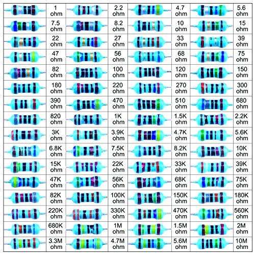 64 Values 1 ohm - 10M ohm 1/4W Metal Film Resistors Assortment Kit.