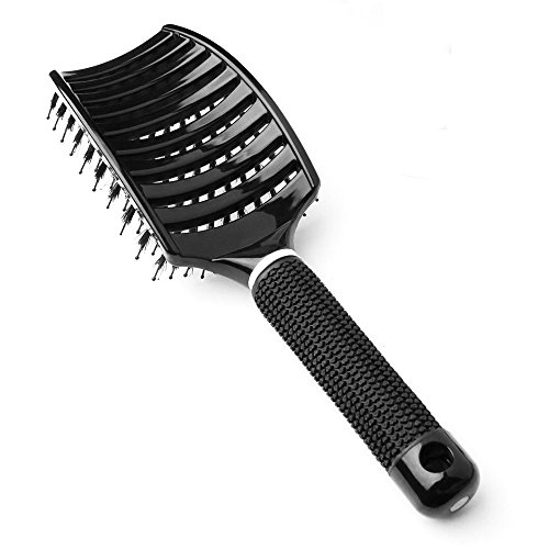 Longtrix spazzola per capelli grande aperta curva e leggera con setole di cinghiale antistatico e anti-aggrovigliamento per asciugatura e styiling (Nero)