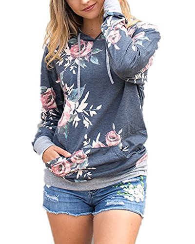 Longwu Felpa con Cappuccio Half Dome da Donna Maniche Lunghe Giacca Pullover Sweatshirt Hoodie Cime Grigio-L