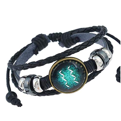 Longyangqk 12 Zodiac Constellation Bracelet Punk Bracciale in lega di cuoio per Constellation Braccialetto a corda intrecciata Bangle (Aquarius)