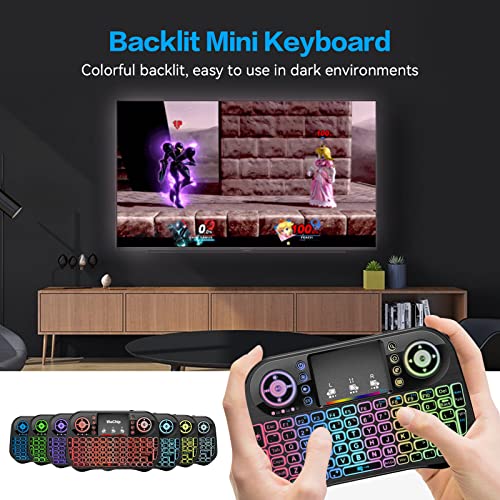 【7 Colori di Retroilluminazione】 La mini tastiera wireless ha 7 modalità di retroilluminazione a colori che possono essere cambiate da "Fn+F2" e dal touchpad. Facile da usare anche in un ambiente buio senza lasciare il divano.