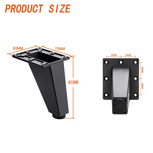 LONGZG 4 piedini per mobili bianchi con viti fai da te in metallo, regolabili in altezza, piedini per armadi, piedi per divano, stile moderno (8 cm, nero)