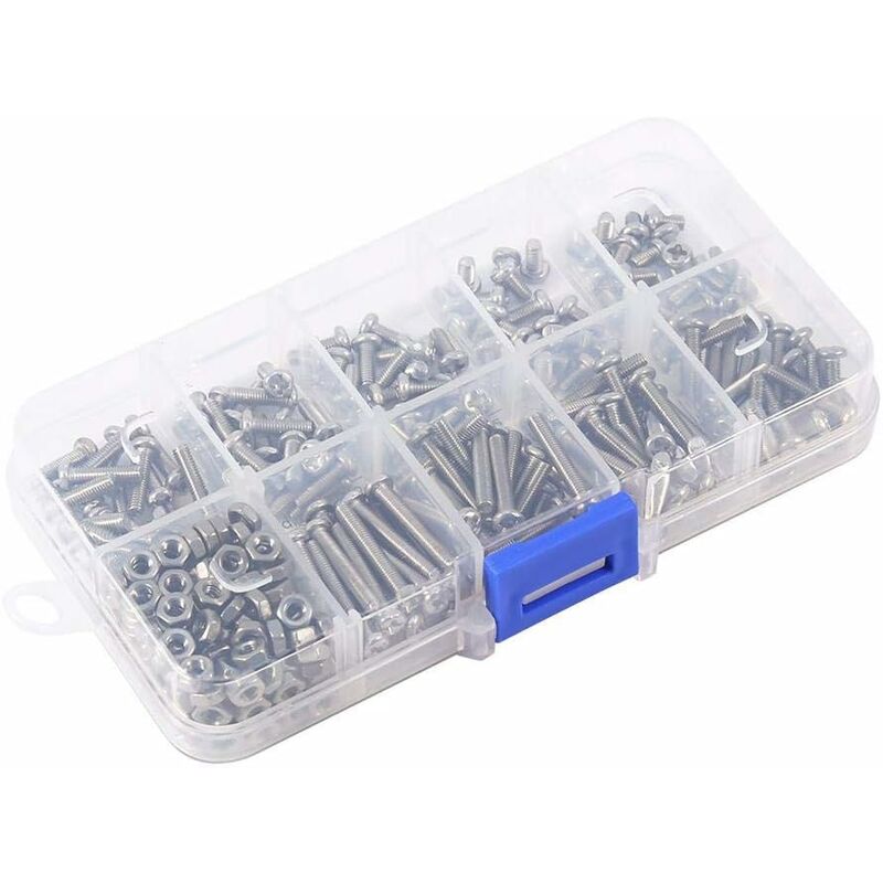 s preciso e pulito. Può semplificarti il lavoro. Le nostre viti e dadi sono conformi al sistema metrico standard Buona conservazione e assortimento Il kit contiene 180 viti e 160 dadi. Lunghezza vite M3: 5/6/8/10/12/14/16/18/20mm. Queste viti & agrave;