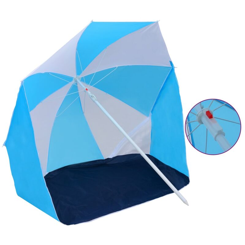 Potete stare al sicuro, freschi e asciutti mentre vi rilassi all'aperto con il nostro ombrellone parasole! È ideale per un ampio campo di attività all'aperto come eventi sportivi, una giornata in spiaggia, ecc. Quest'ingegnoso ombrellone da spiaggia è facile da montare ed è dotato di lati rimovibili che offrono la massima protezione dal sole e dal vento. Basta aprirlo ed è pronto per l'uso. Quando il sole si muove o il vento cambia direzione, dovrete semplicemente regolare la sua posizione in modo da poter stare al riparo tutto il giorno. Il tappeto staccabile tiene lontana la sabbia e offre ai bambini un posto fresco dove riposare. Questo modello può anche essere usato come parasole. Colore: Blu e bianco Materiale: Tessuto (poliestere 170T), alluminio verniciato a polvere Dimensioni: 150 x 115/191 cm (D x A) Lunghezza arco: 180 cm Diametro del palo: 19/22 mm Con tessuto laterale e base Ideale per l'uso sulla panchina, in giardino o durante un festival Resistente all'acqua e facile da