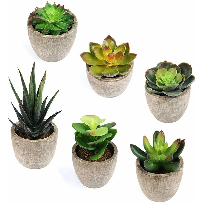 6 pezzi di piante grasse artificiali belle e luminose sono l'ideale per aggiungere un po' di verde alla pianta. interni, per rallegrare una mensola, davanzale, scrivania e qualsiasi luogo si desideri Aspetto naturale Il gioco delle piante artificiali è composto da diversi tipi di piante grasse. Ogni parte è realistica e dettagliata. L'aspetto è molto naturale, è bene aggiungere un po' di verdeà la tua vita.Bella decorazione per la tua casa Le piante sono associate alla vita. vasi in fibra di legno grigio che sono adatti & agrave;