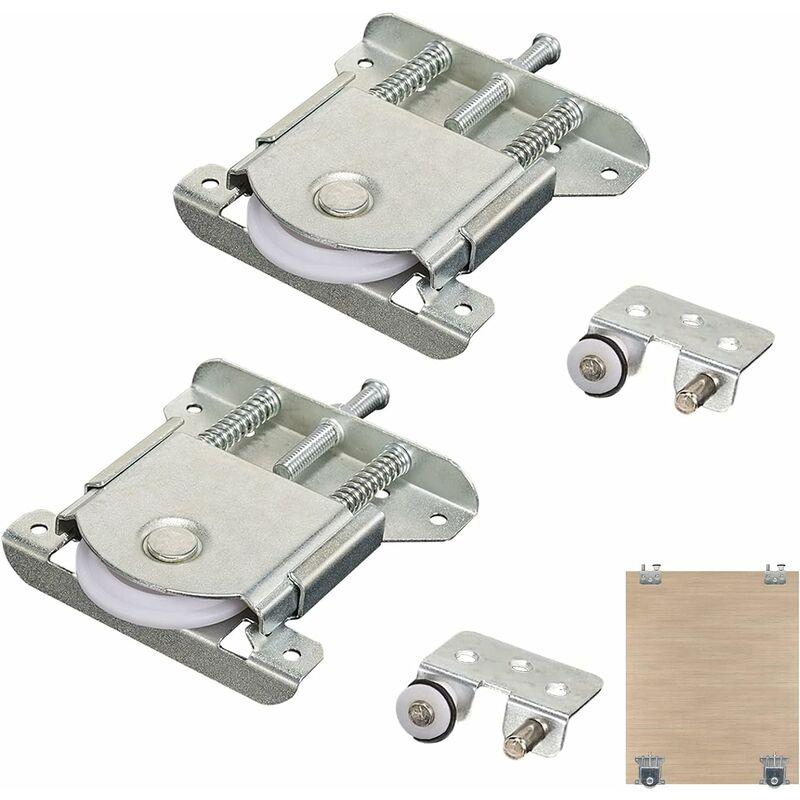 Con la ruota in nylon scorrevole, puoi aprire e chiudere la porta facilmente e silenziosamente. È un accessorio per la ruota della porta scorrevole e non fa rumore. È un sostituto ideale per sostituire i rulli delle porte scorrevoli vecchi o danneggiati. Adatto per ante scorrevoli di armadi, finestre, armadi, armadi, vetrine e scarpiere, ecc. Specifiche: Materiale: ferro, nylon Colore: argento Dimensioni: 84 * 78 / Confezione: 2 * rulli per ante dell'armadio