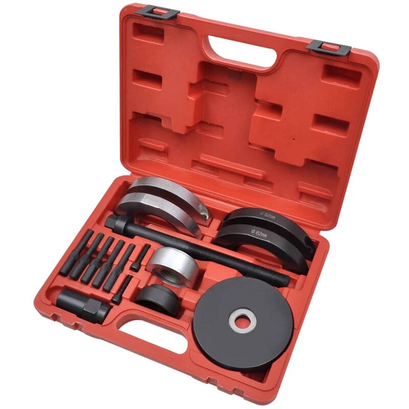 Questo set di strumenti per i mozzi dei cuscinetti delle ruote sarà indispensabile nelle officine mecccaniche per i professionisti e gli appassionati fai da te, grazie alla sua alta qualità, alle carateristiche comprensive e lo stoccaggio facile. Il kit può essere usato sul posto, senza dover rimuovere il puntone o hub dal veicolo, risparmiando molto tempo.Realizzato in materiali di alta qualità, questo set compatto per i mozzi dei cuscinetti è molto resistente nel tempo. Il kit è consegnato in una carcassa soffiata per facilitare il trasporto e lo stoccaggio. Dimensioni del kit: 33 x 25 x 9,5 cm (L x P x A) Materiale: acciaio al carbonio Diametro del cuscinetto: 62 mm Adatto per: VW Polo, Fox, Lupo;