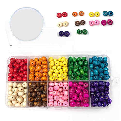 LongZYU 600 Pezzi Perline Legno Colorate Perline Legno Assortiti Rotondi Perle Legno Gioielli Perline Rotonde Assortite Perline Naturali con Fili Elastici per Artigianato Collane Braccialetti