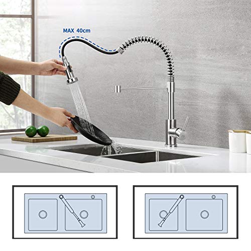 Lonheo Rubinetto Cucina con Doccetta Estraibile In Acciaio Inox Spazzolato, 2 Getti, Girevole a 360°, Miscelatore Lavello Alto Con Molla a Spirale e Doccetta Supporto