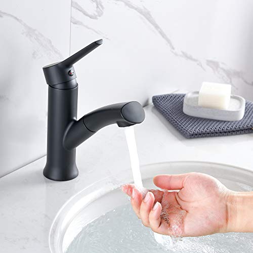 LONHEO - Rubinetto nero per lavabo cromato con doccetta estraibile, ideale per lavare i capelli