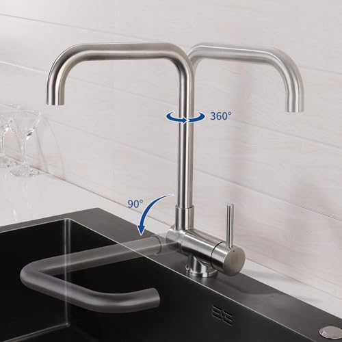 QUALITÀ SUPERIORE: rubinetto da cucina internazionale in acciaio inossidabile 304 di alta qualità confinitura in acciaio inossidabile spazzolato. Senza piombo, nessun odore particolare, prenditi cura della tuasalute.