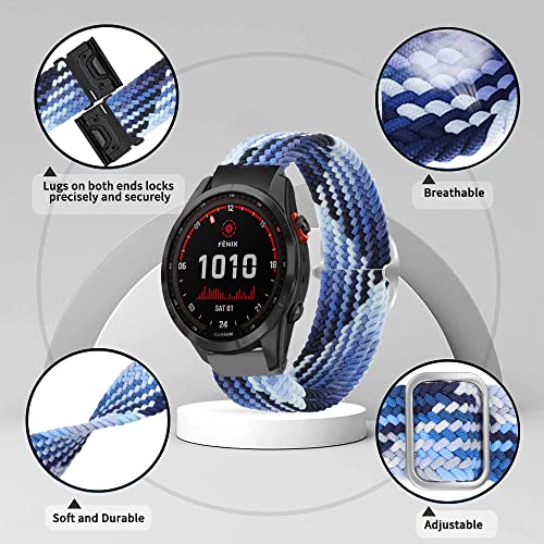 Lonkenn Cinturino per Garmin Fenix 7S/6S/5S/6S Pro/5S Plus/Instinct 2S/6S Sapphire, 20mm Intrecciato Cinturino Regolabile in Nylon Elastico Intrecciato Cinturino di Ricambio, Morbido-Colorato Blu